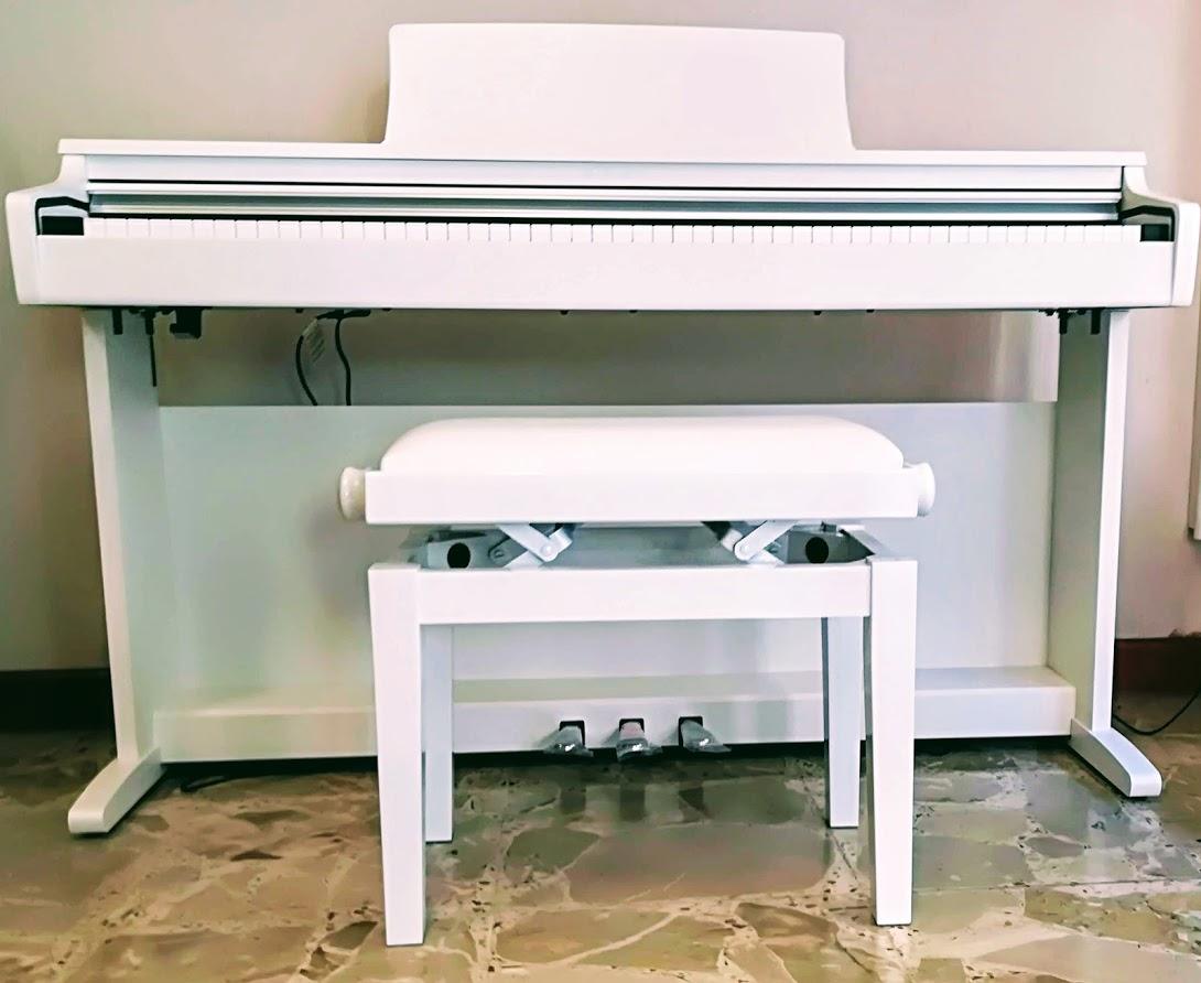 - Design: Mobile compatto ed elegante, completo di copritastiera, leggio e pedaliera a 3 pedali.